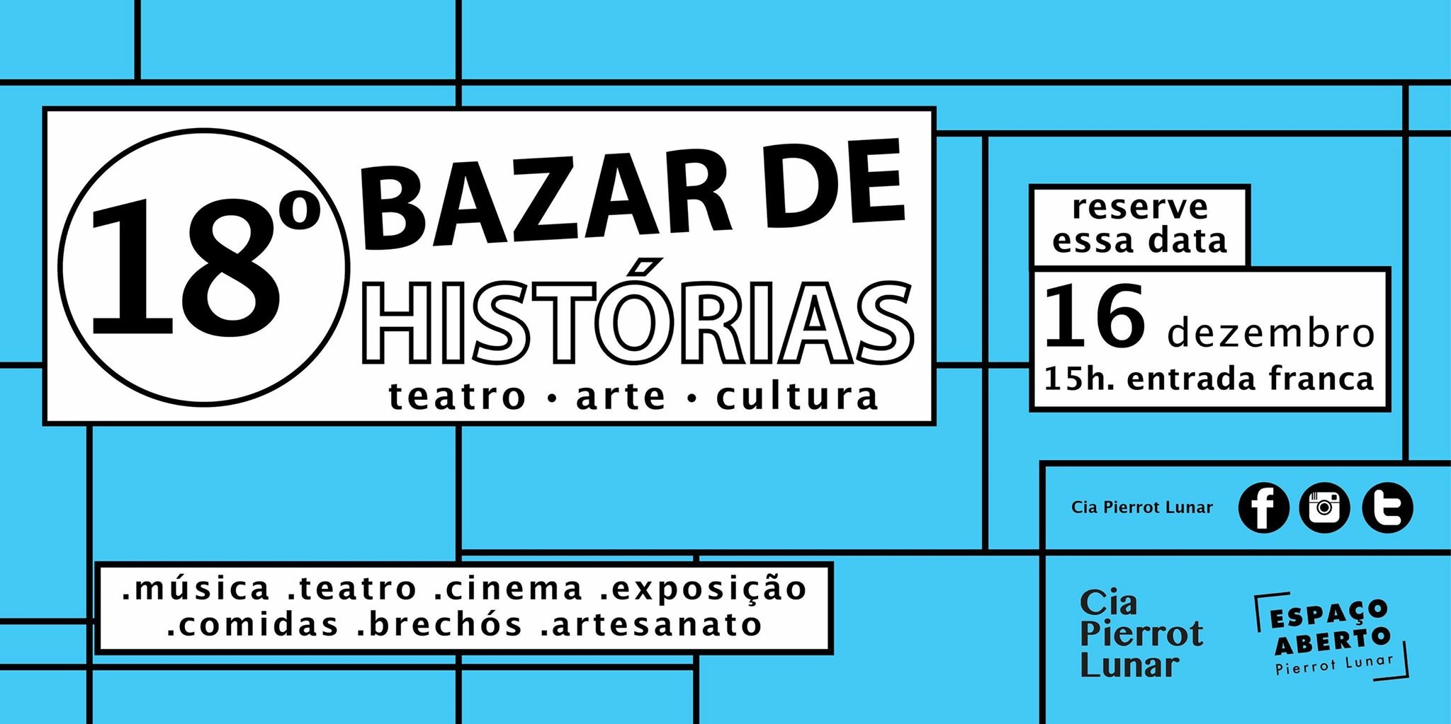 O Evento surgiu em 2008, como parte das reflexões da Cia Pierrout Lunar sobre a compreensão do público, o resultado deu-se no Bazar de Histórias, um evento aberto ao público e aos artistas da cidade, com entrada franca que abraça gastronomia, quitutes, brechó, artesanato e apresentações artísticas. Ao desconstruir as fronteiras entre arte e cotidiano, artista e espectador, o Bazar revelou-se em tradição e acontece há quase 10 anos, por aliar entretenimento e arte.