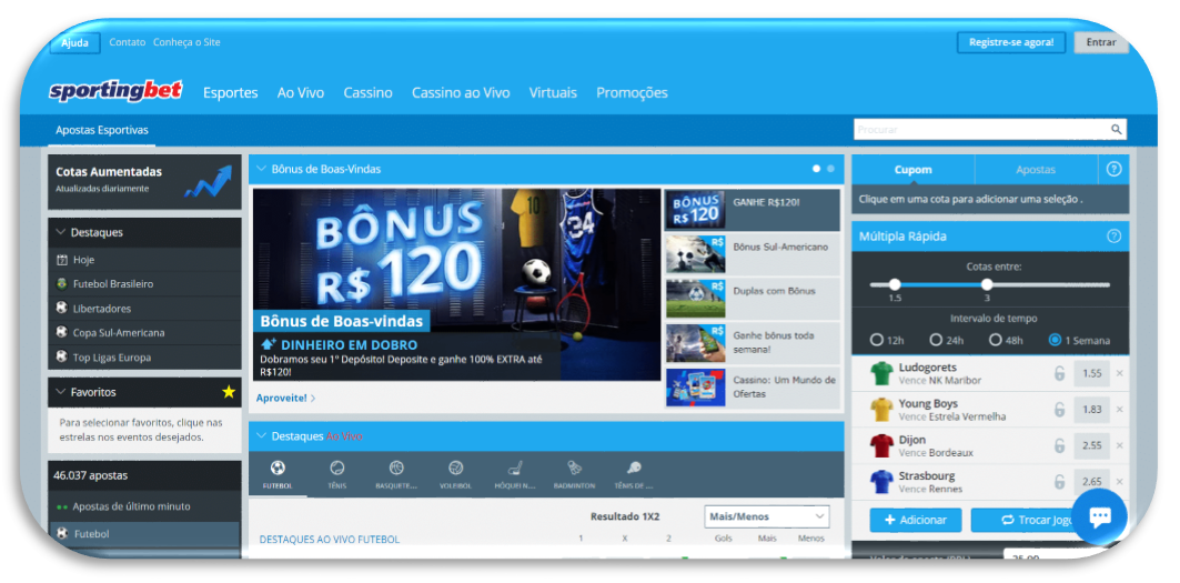 - Sportingbet: já aqui, o usuário poderá receber um bônus de até 120 reais. Ele também pode ser ativado por meio do aplicativo.