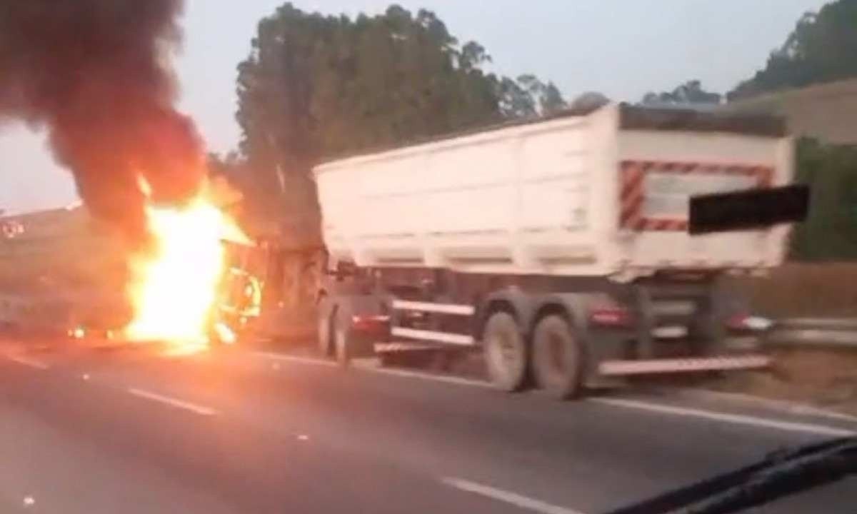 Segundo a Arteris Fernão Dias, concessionária responsável pelo trecho, uma carreta bitrem carregada com 24 toneladas de soja tombou e pegou fogo na altura do km 863, no sentido São Paulo. Apesar do susto, ninguém ficou ferido.