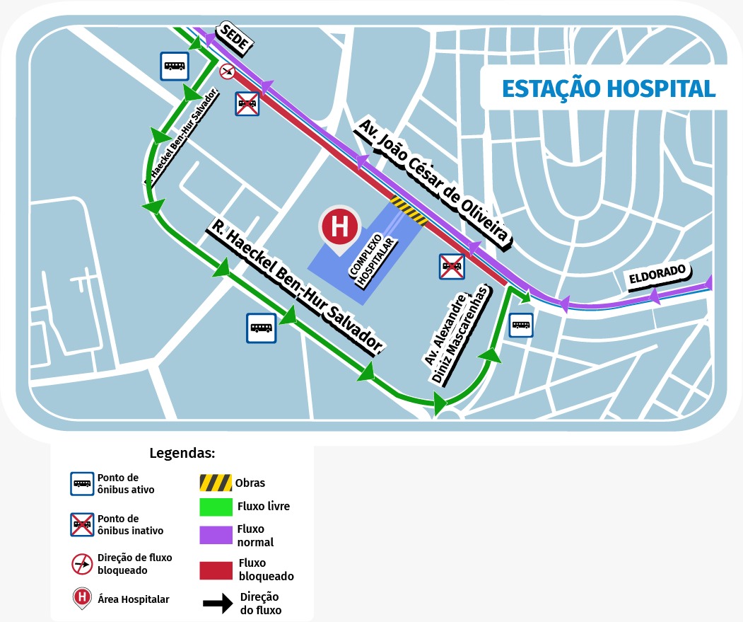 O bloqueio começa pelo sentido Sede/Eldorado, com desvios sinalizados pela rua Haeckel Ben-Hur Salvador e vias próximas. Já o fluxo no sentido oposto (Eldorado/Sede) seguirá normalmente, segundo a Autarquia Municipal de Trânsito e Transportes (Transcon), que orienta os motoristas a evitar a região.