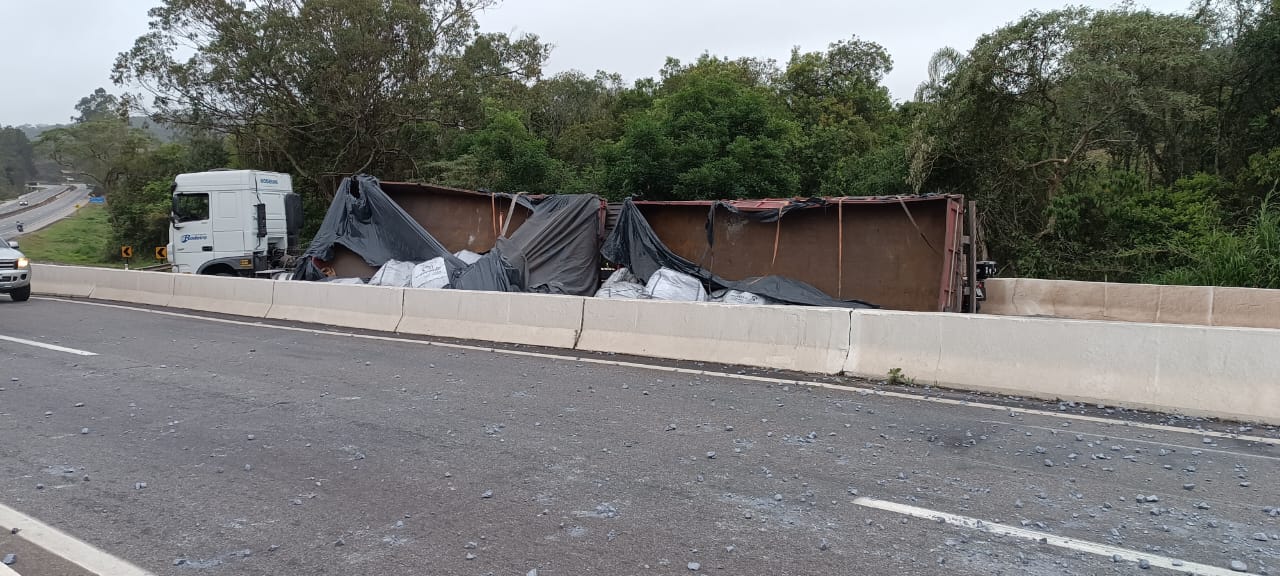 Segundo a EPR Via Mineira, concessionária responsável pelo trecho, a carreta tombou e espalhou a carga pela pista, provocando a interdição total no sentido Juiz de Fora, por volta das 7h20. Por volta das 9h30, a retenção já chegava a 7 quilômetros.