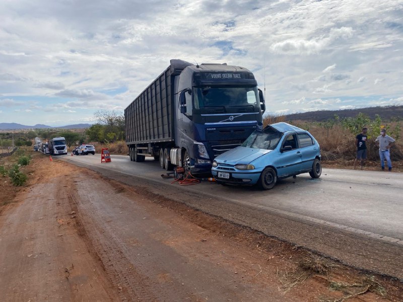 Uma mulher morreu em um acidente envolvendo um carro e uma carreta na MGC-122, em Espinosa, no Norte de Minas, no início da manhã deste sábado (20). O acidente foi registrado no km 24, por volta das 5h25.
