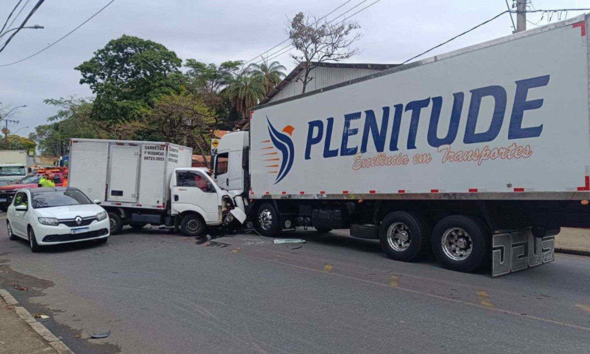 Um motorista de 40 anos ficou preso às ferragens após um acidente envolvendo três caminhões e um carro nesta segunda-feira (13), no bairro Bandeirantes, na Região da Pampulha, em Belo Horizonte, próximo ao Zoológico da cidade.