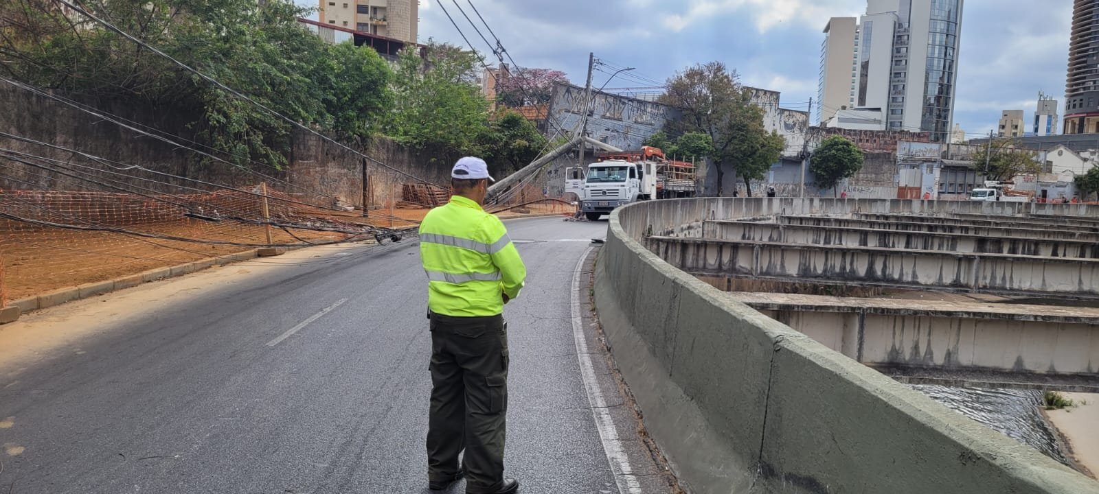 O trânsito ficou complicado na manhã desta sexta-feira (3) após a queda de um poste na Avenida dos Andradas, no cruzamento com a Avenida do Contorno, no limite entre os bairros Santa Efigênia e Centro, em Belo Horizonte. Apesar do impacto, ninguém ficou ferido.