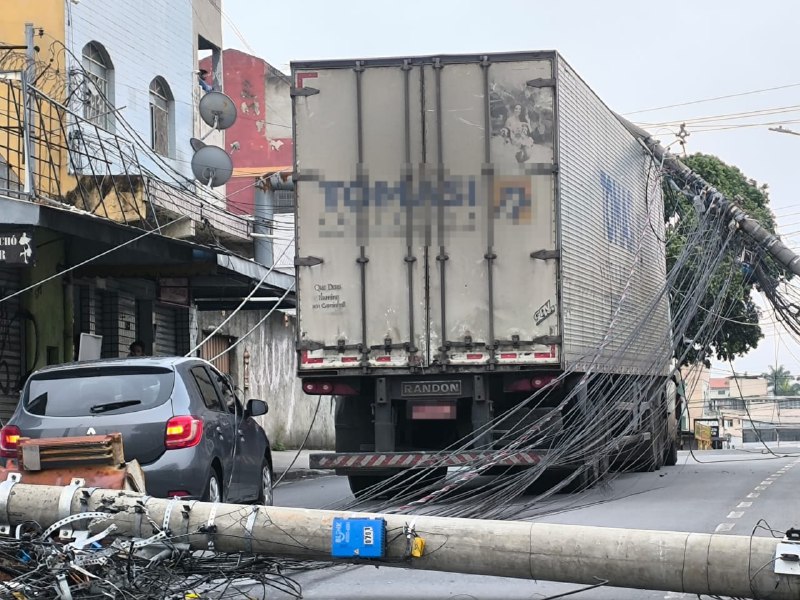 Segundo o Corpo de Bombeiros, dois postes caíram após um caminhão arrastar a fiação elétrica ao passar pelo local. Com o impacto, os postes atingiram dois veículos que estavam estacionados, enquanto os cabos elétricos ficaram sobre o caminhão. Não houve vítimas, mas o motorista do veículo de carga permaneceu retido dentro da cabine devido ao risco de choque elétrico.