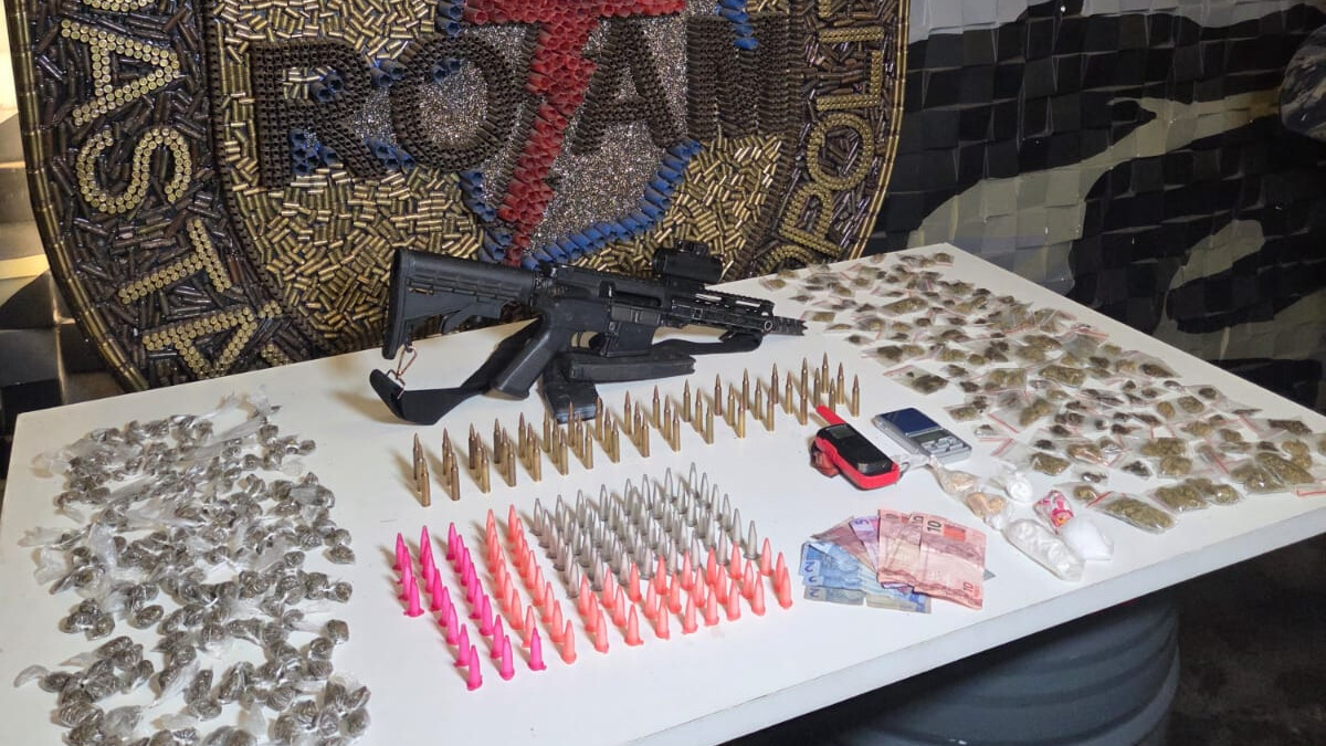 Durante buscas nas proximidades de onde o material foi descartado, os militares ainda localizaram um fuzil calibre 5,56, municiado com 48 cartuchos armazenados em dois carregadores.