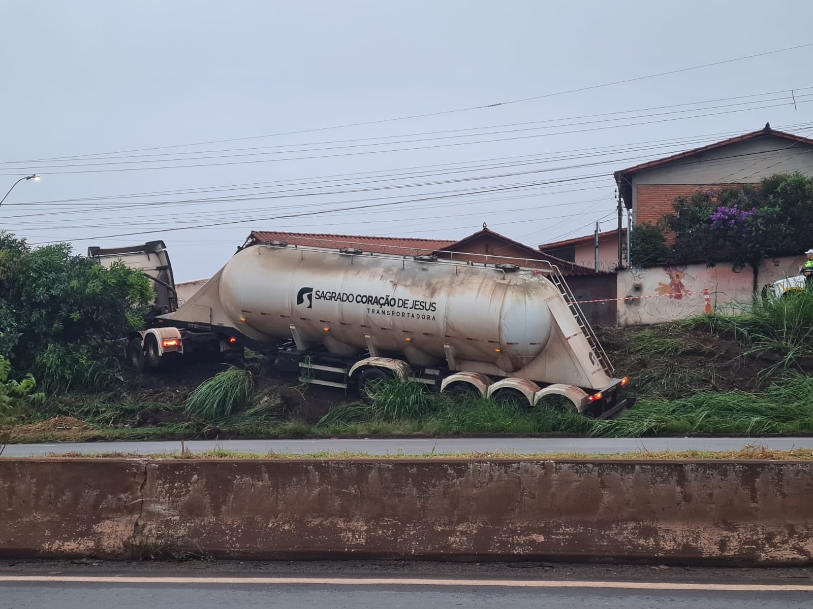 Segundo a Guarda Civil Municipal (GCM), o motorista relatou que perdeu o controle do veículo devido à pista molhada. Com isso, a carreta atravessou a pista marginal e acabou subindo em um barranco às margens da via.
