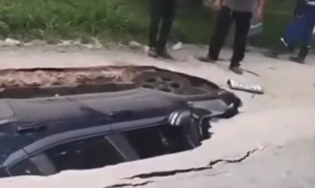 O veículo, um Jeep Renegade, chegou a ficar parcialmente preso no buraco. Um guincho foi acionado para fazer a retirada, mas durante a tentativa de reboque o solo cedeu ainda mais, fazendo com que a cratera aumentasse e o automóvel fosse totalmente tragado.