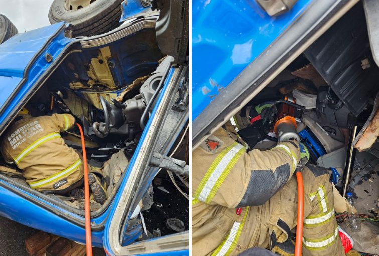 O condutor informou aos socorristas que havia uma segunda ocupante no interior do caminhão.