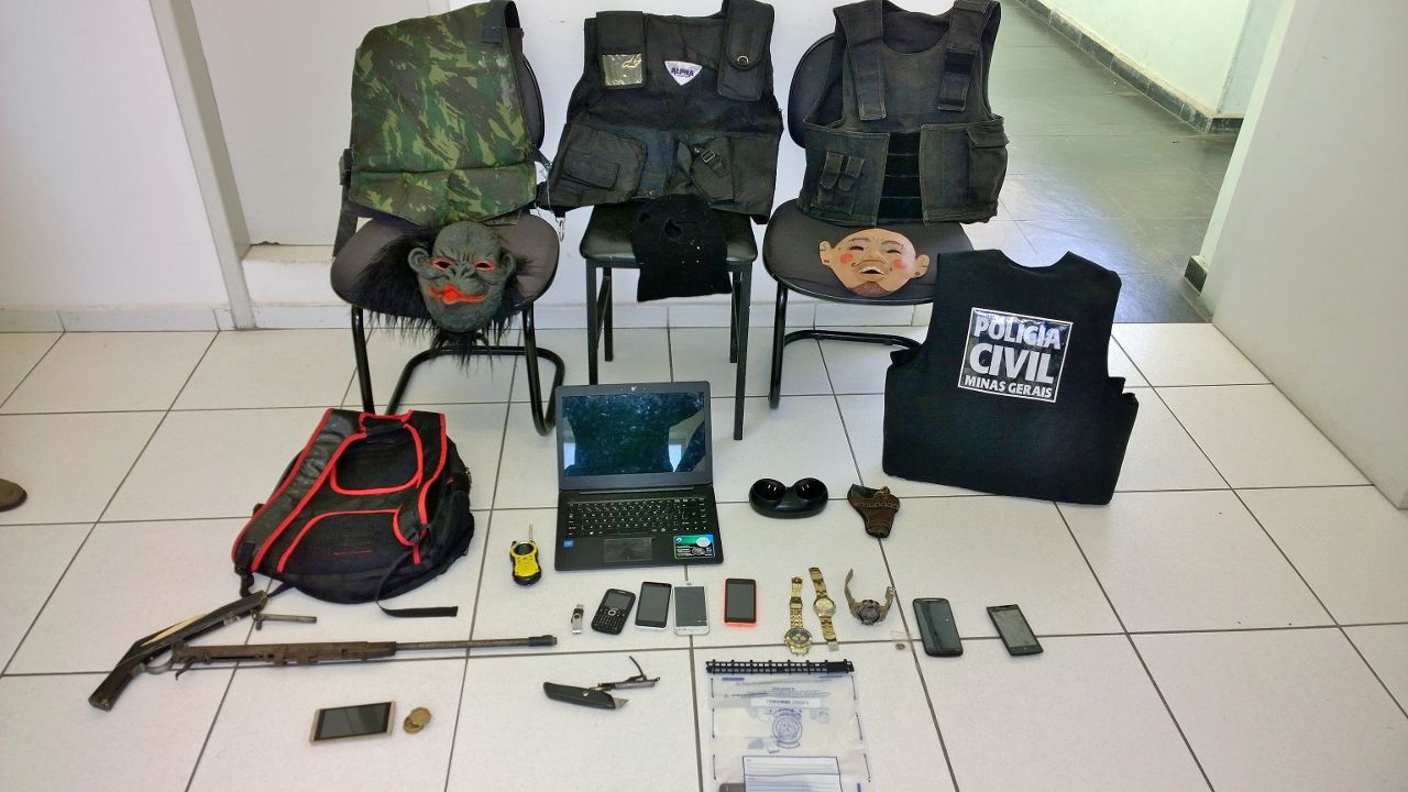 Na operação também foram apreendidos um telefone celular, relógios e celulares das vítimas, coletes balísticos, notebook, rádio comunicador e armas de fabricação artesanal.